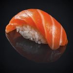 Состав: лосось, авокадо, огурец, майонез, икра “Масаго”, нори, рис.