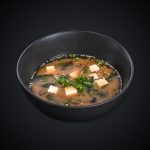 Мидии двустворчатые, паста “Том Ям”, сливки, молоко кокосовое, лук красный, кинза, гренки.