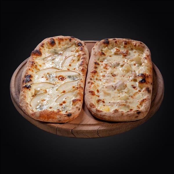 Состав: моцарелла, дор-блю, груша, пармезан, соус сливочный.