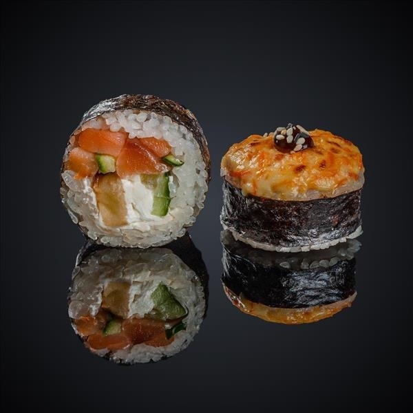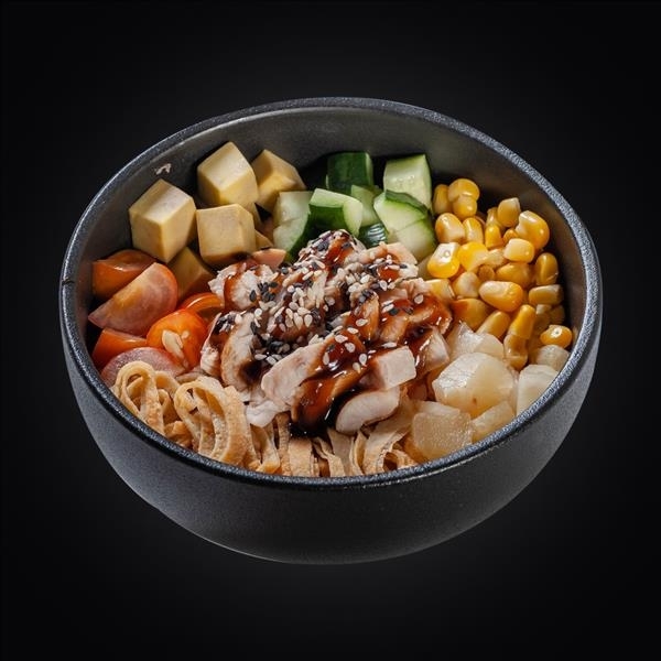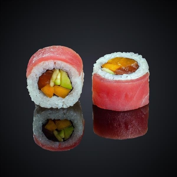 Состав: копченая курица, огурец, авокадо, тамаго, ананас, помидоры черри, кукуруза, соус «Унаги», соус «Гавайский», кунжут, рис.