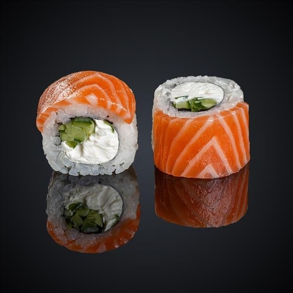 Состав: лосось, огурец, сыр “Cremette”, нори, рис.