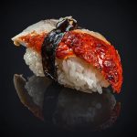 Состав: Лосось, креветка, тунец, сыр «Cremette», огурец, авокадо, икра масаго, зеленый лук, соус «Унаги», соус «Спайс», нори, рис