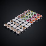 Состав: лосось, тунец, угорь, авокадо, сыр “Cremette”, нори, рис.