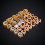 Состав: лосось, тунец, угорь, авокадо, сыр “Cremette”, нори, рис.