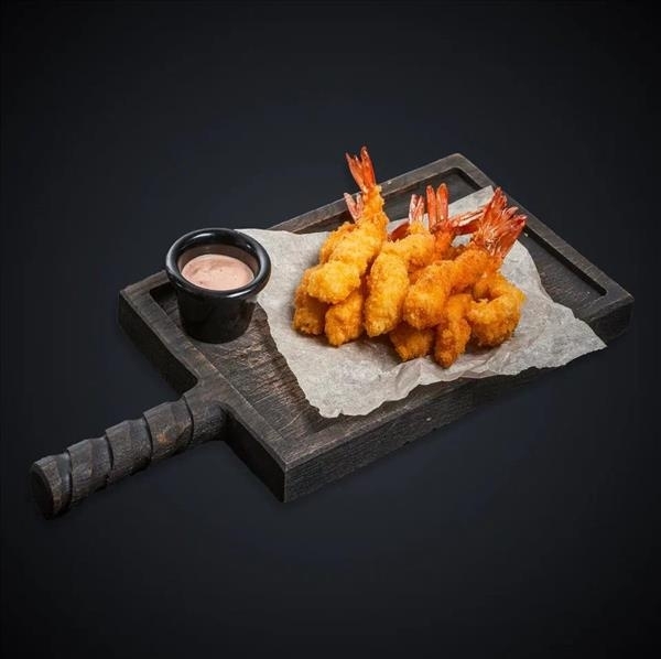 Креветки, бекон, соус «Унаги», кунжут, соус «Сливочный».