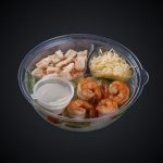 Состав: креветки, авокадо, огурец, томаты “Черри”, салат “Чука”, манго, соус “Гавайский”, соус “Свит чили”, масло оливковое, прованские травы, кунжут, рис.
