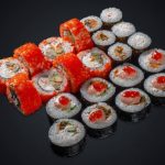 Состав: лосось, угорь, креветка, тунец, сыр «Cremette», манго, огурец, авокадо, икра масаго, соус «Унаги», соус «Спайси», нори, рис.