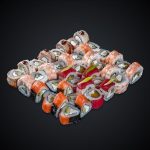 Состав: Шикарная креветка — 1, Пикантный тунец — 1, Запеченный с лососем — 1, Японский краб — 1