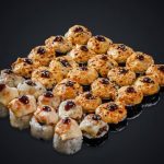Состав: Шикарная креветка — 1, Пикантный тунец — 1, Запеченный с лососем — 1, Японский краб — 1