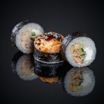 Cостав: Ролл «Off white» — 1шт, Ролл «Фудзияма» — 1шт, Ролл с угрём — 1 шт, Ролл «Чиз Salmon-unagi» — 1шт.