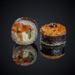 Запеченный от Катаны — 1/2, Запеченный с лососем — 1/2, Запеченный с мидиями и снежным крабом — 1шт, Запеченный с копченой курицей